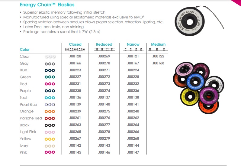 Energy Chain™ is the proven leader among all brands of elastic chain. Numerous universities and clinical researchers have shown that RMO®’s Energy Chain™ outperforms virtually all other elastic chains available.
