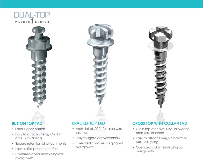 RMO® Dual-Top Temporary Anchorage Device (TAD) system provides efficient and flexible biomechanics. This apppliance significantly enhances treatment capabilities and can be extremely effective in reducing treatment time, surgeries, and extractions. Appliances can be inserted chairside and loaded immediately.